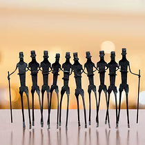 Bastar Dhokra products are cast in bell metal by lost wax process and display an intriguing finish having bell metal wire work. Bastar Dhokra products consists an alloy of bronze, brass, nickel, and zinc. The minimum to maximum size varies from 1" (inch) to 14' (feet). The products consist mainly of show case and utility items.