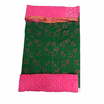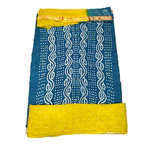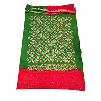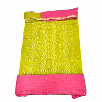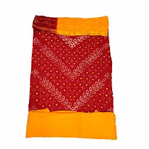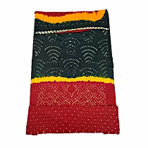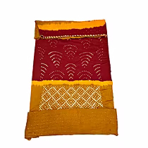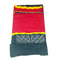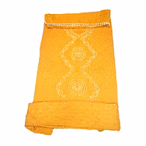 The Bandhani is an ancient, dyeing technique, which is widely used in the states Gujarat and Rajasthan. The fabric is tied in intricate patterns with the help of nails, beads or grain, which prevents the colour from seeping into the tied areas during dyeing.