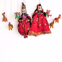 Marionettes or string puppets in Rajasthan is known as: kathputli (Kath- wood, putli- doll, figure). The kathputli tradition of Rajasthan is an ancient art and its practitioners have entertained, made social commentary, and passed down important information for countless generations.
