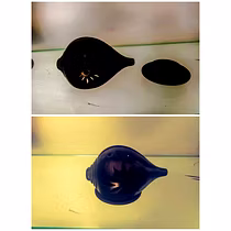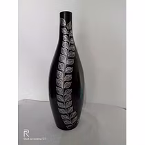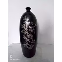 Nizamabad Black Pottery is a special kind of clay-ware with a dark lustrous body. This sheen is obtained by dipping it into a solution of clay and vegetable matter, dried, then rubbed with a vegetable oil, and then baked in fire. This process renders a lustrous effect to the vegetable matter. Silver ornamentation is done on the baked surface which features a shiny black surface with engraved silver patterns. They stand out with their striking designs of flowing lines and floral patterns on the surface. The craftsmen of Nizamabad Black pottery in Azamgarh district create an array of black pottery items that include Vases, Cups and Saucers (tea set), dinner set, Water Jugs, Plates, Jars, Flower Pots, tableware and other items.