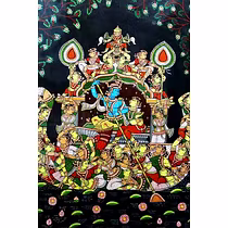 The paintings of pattachitra is a living art which has its roots since ancient times. Themes for these paintings range from incidents in the life of Lord Krishna and the avatars of Lord Vishnu to the epic tales of the Ramayana and Mahabharata. The most important feature of pattachitra is the canvas on which the painting is done, without this base, called patta astra the significance of the art is incomplete.