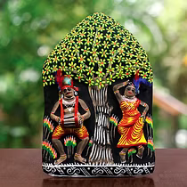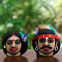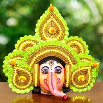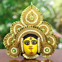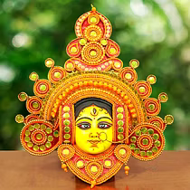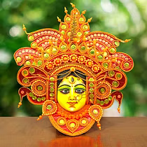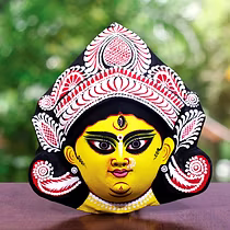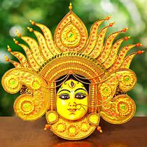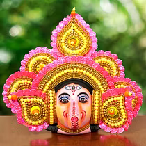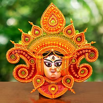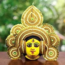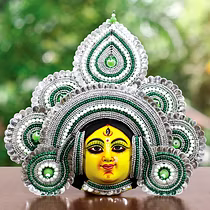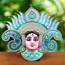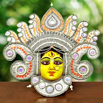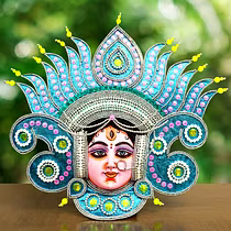 Chau masks are famous all over the world. Masks of Charida village of Purulia are mainly used for Chau dance and for decoration too. The masks portray different characters of Gods, demons and animals. The masks are made of paper pulp, mud and clay subsequently dried in the sun to make it hard. The masks are then colourfully painted. The eye and nose areas have holes to enable vision enable vision and breathing. Finally the masks are decorated with zari, and other adornments.
