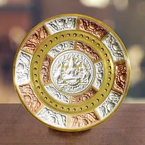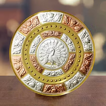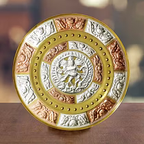 Thanjavur art plates are encrusted on a brass tray, pot (Kadam) or cup (panchapatra). Tanjore Art Plates have a unique appeal on account of its superb manual dexterity and skilled craftsmanship and its elegance as recognized the world ever.