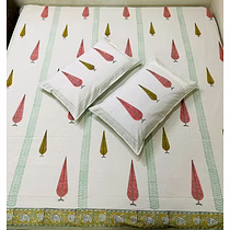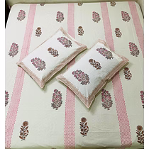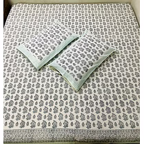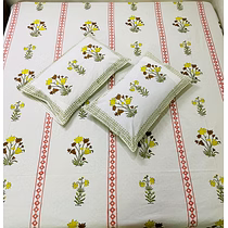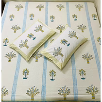 * Style name : Hand Block printed Jaipuri ethnic bed sheet * Sheet Size : 90 x 108 inches * Pillow cover : 2 pc (18 x 27 inches each) * Type : Flat Sheet * Thread Count : 300 TC