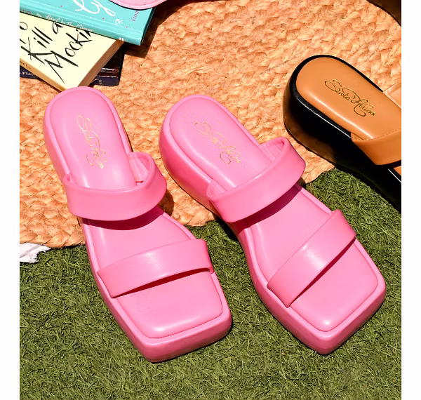 "Walk into style with this pink pair of heels by Sole House. Made from high quality faux leather, it features slip on closure and square toe design. Pair it with your favourite dress to elevate your look.