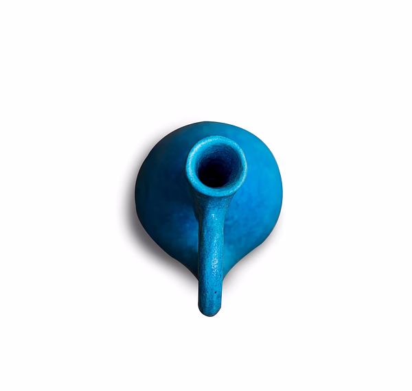 Each piece is hand-molded, sun-dried, and low-fired, ensuring a distinct texture and organic finish. The smooth turquoise hue and minimalist shape make it an ideal decor accent for homes, studios, or boutique interiors. Whether displayed as a standalone curio or paired with flowers, this jug embodies the grace of sustainable Indian art.