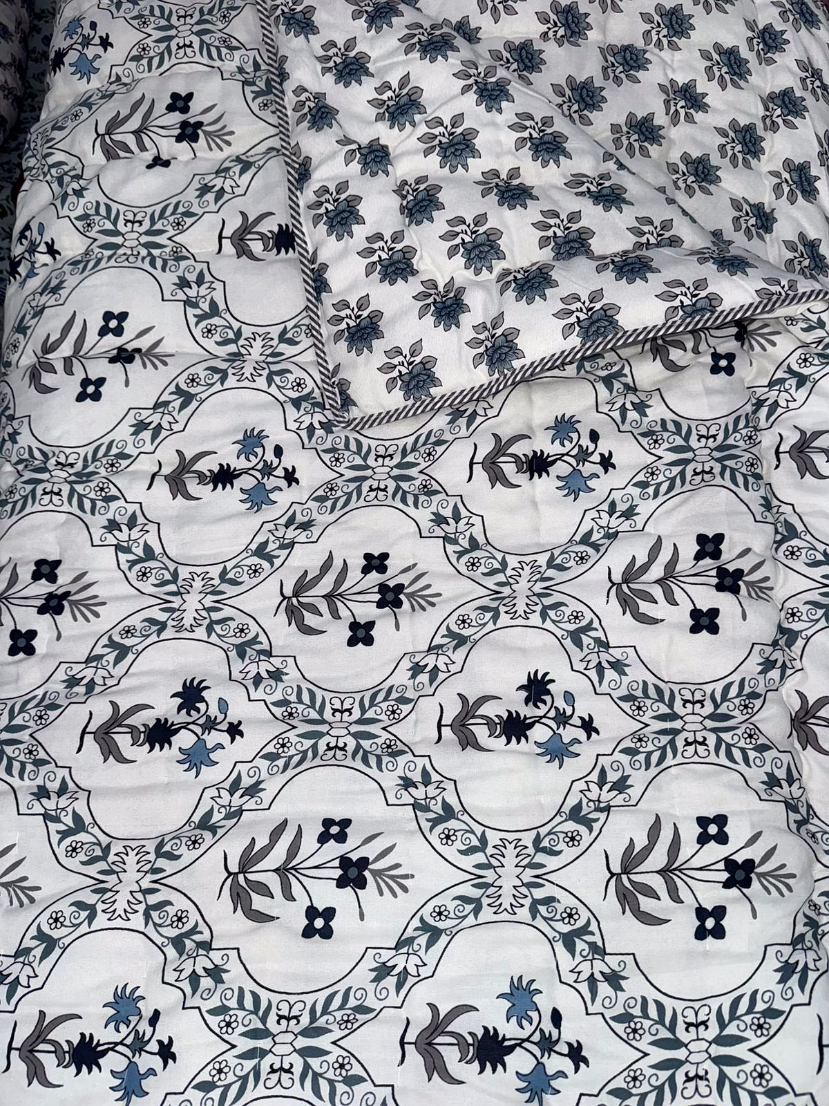 Indulge in luxury comfort with our Premium 100% Cotton Rajai Quilt. Experience year-round warmth, breathability, and softness with this exquisite bedding option.