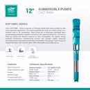 The motor and impeller system are designed for maximum efficiency, ensuring optimal performance with reduced power consumption. The pump operates with minimal noise and vibration, leading to lower operational wear and reduced maintenance costs. With its robust design, the 12-inch submersible pump is also easy to install and maintain, providing dependable, cost-effective solutions for both short-term and long-term water management needs.