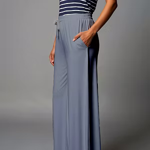 Featuring a mid-rise design with an elastic waistband, they provide a secure yet flexible fit that flatters your waist without compromising on comfort. The wide-leg, flowy silhouette adds a touch of elegance and ease to your movements, while the ankle-length cut gives a modern, trendy appeal.