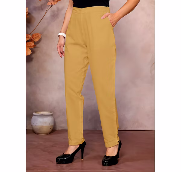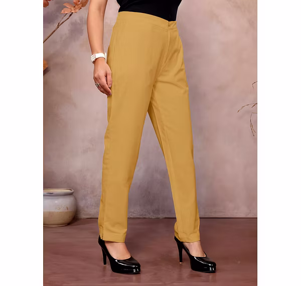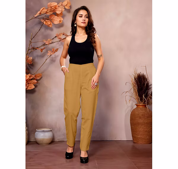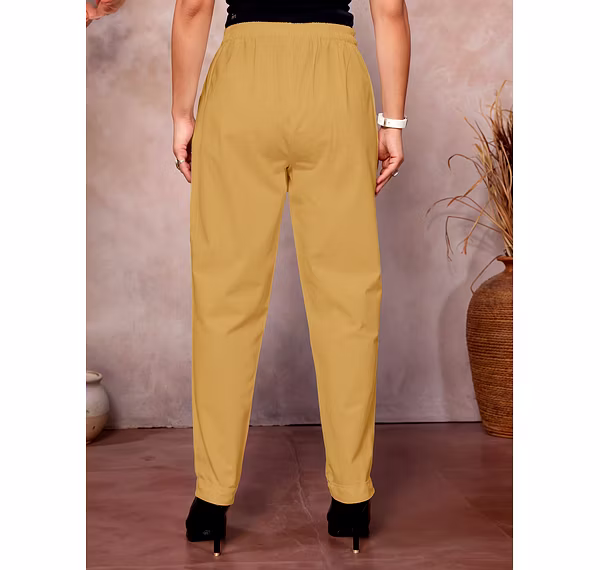 Comfortable and stylish cotton pants for women, perfect for formal, casual, and daily wear. Features a half elastic waistband for a relaxed fit, ankle-length design, and breathable cotton fabric for all-day comfort.