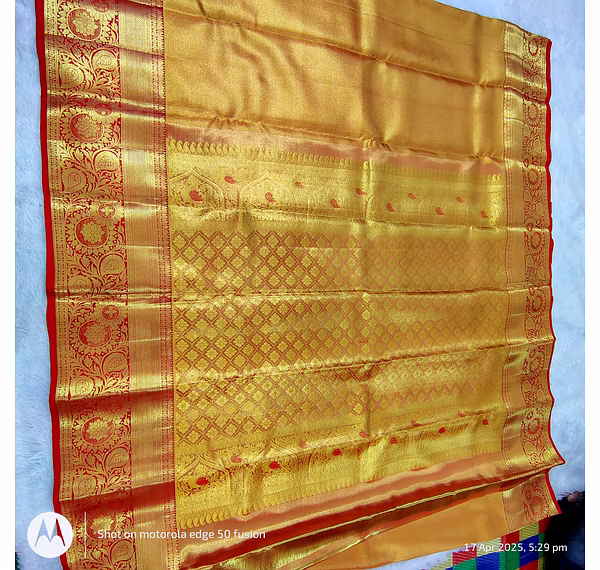 Each thread tells a story of skilled craftsmanship and attention to detail. The 1gm gold zari weaving adds a touch of opulence, making this saree a prized possession.
