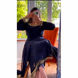 The 48-Inch Foux Gorgette Dress is a true epitome of elegance and sophistication. Crafted with utmost precision and attention to detail, this exquisite dress is designed to make a statement wherever you go. Made with high-quality foux gorgette fabric, it offers a luxurious and lightweight feel, allowing you to move with grace and comfort. The dress features intricate embroidered thread and sequin work, adding a touch of glamour and allure. The delicate threadwork showcases the craftsmanship of skilled artisans, while the shimmering sequins catch the light and create a mesmerizing effect. Every stitch and embellishment is placed with precision, resulting in a breathtaking masterpiece. The 48-Inch Foux Gorgette Dress is designed to flatter all body types, with a fitted bodice that accentuates your curves and a flowing skirt that adds an ethereal touch. The sweetheart neckline adds a hint of romance, while the cap sleeves provide a modest yet stylish look. The dress also comes with a matching belt that cinches in at the waist, creating a feminine silhouette. Whether you're attending a glamorous evening event, a wedding, or a special occasion, this dress is sure to turn heads. Its timeless design and exquisite craftsmanship make it a versatile piece that can be styled in various ways. Pair it with statement jewelry and heels for a red carpet-worthy look, or opt for minimal accessories and flats for a more understated elegance. In addition to its aesthetic appeal, the 48-Inch Foux Gorgette Dress is easy to care for, making it a practical choice for any fashion-conscious individual. Simply follow the care instructions to ensure its longevity and retain its original beauty. Indulge in the opulence and elegance of the 48-Inch Foux Gorgette Dress, and let it be a reflection of your refined taste and impeccable style. With its exceptional craftsmanship and breathtaking details, this dress is a true work of art that will make you feel like a queen.