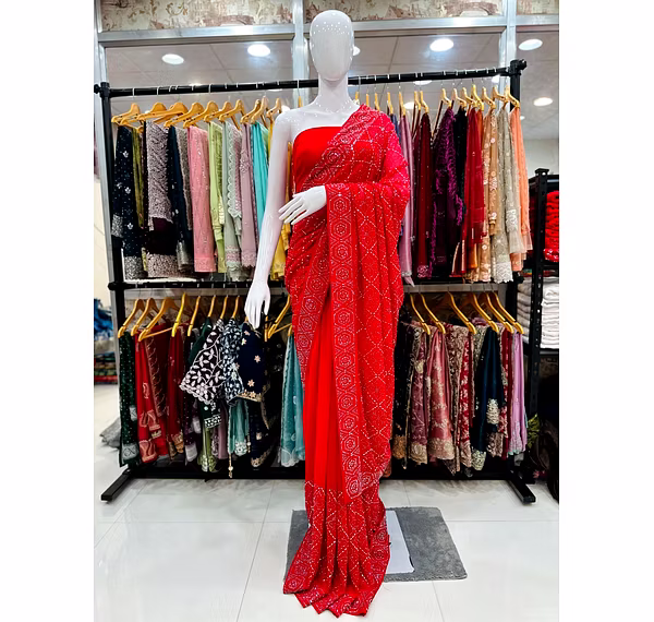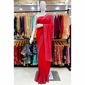 Introducing our latest creation - the ultimate Saree and Blouse set that will add a touch of elegance and glamour to any occasion. Our Saree, weighing only 60 grams, is incredibly lightweight and comfortable, perfect for long events where you want to look amazing while feeling comfortable. The full heavy Swarovski and mirror work is truly one-of-a-kind, and the heavy border adds a touch of sophistication. Our Blouse is made of high-quality fabric and is designed to fit like a glove, enhancing your curves and making you feel confident. The running work is intricate and adds an element of charm to the overall look, making it a perfect match for the Saree. Our Saree and Blouse set is perfect for wedding ceremonies, parties, and other special events. The unique combination of Swarovski and mirror work is sure to make heads turn and leave a lasting impression. The lightweight Saree and comfortable Blouse make it easy to move around and enjoy the event without compromising on style. At our company, we're committed to providing our customers with the best products possible. That's why we've gone the extra mile to ensure that our Saree and Blouse set is of the highest quality, using only the best materials and craftsmanship. If you're looking for a stunning saree and blouse set that is comfortable, lightweight, and designed to make you look and feel like royalty, then look no further. Try our Saree and Blouse set today and experience the ultimate in elegance and glamour.