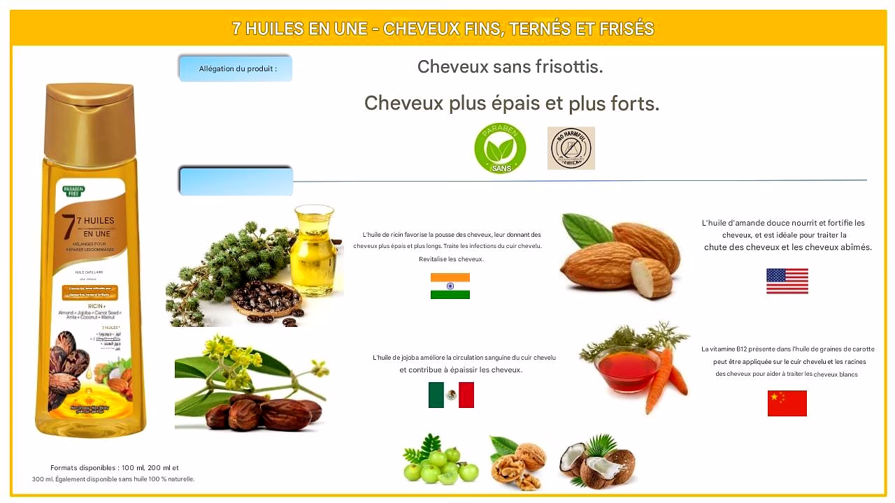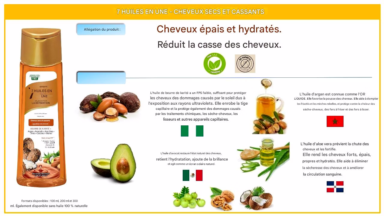 L’huile capillaire avec la bonté de 7 huiles naturelles.