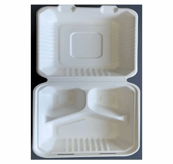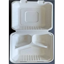 Technical Specs: Dimensions 9" x 9" (229x229mm) with 3 partitioned sections. Crafted from 100% renewable Sugarcane Bagasse with a hinged lid. Performance: Microwave and freezer safe (-20°C to 120°C). Compartments keep mains and sides separate, preventing sogginess. The integrated tab-lock lid ensures secure, stackable transport. Logistics: Nests efficiently for packing 200 units/carton. A 40ft HQ container accommodates approx. 950 cartons. Compliance: Certified compostable (EN 13432/ASTM D6400), FDA food-safe, and PFAS-Free. Customization: Lid embossing available.