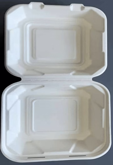 9x9" Clamshell Container: Crafted from renewable sugarcane bagasse.