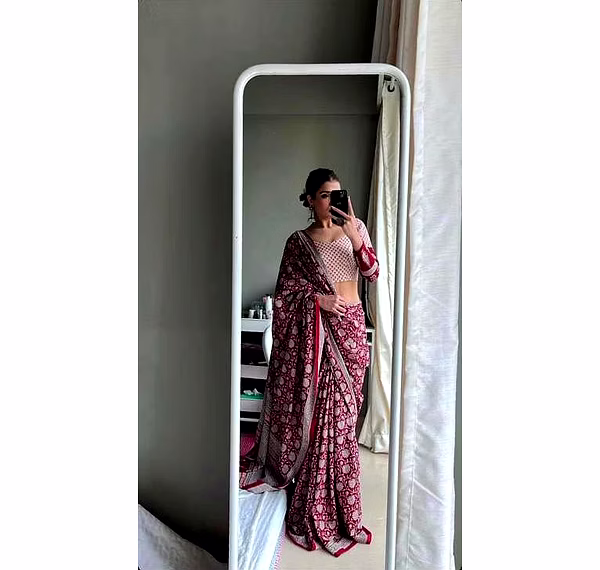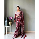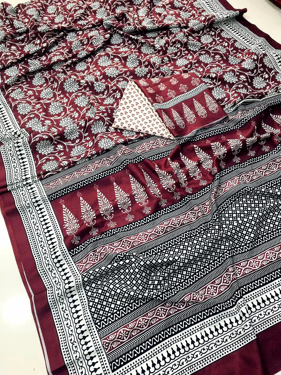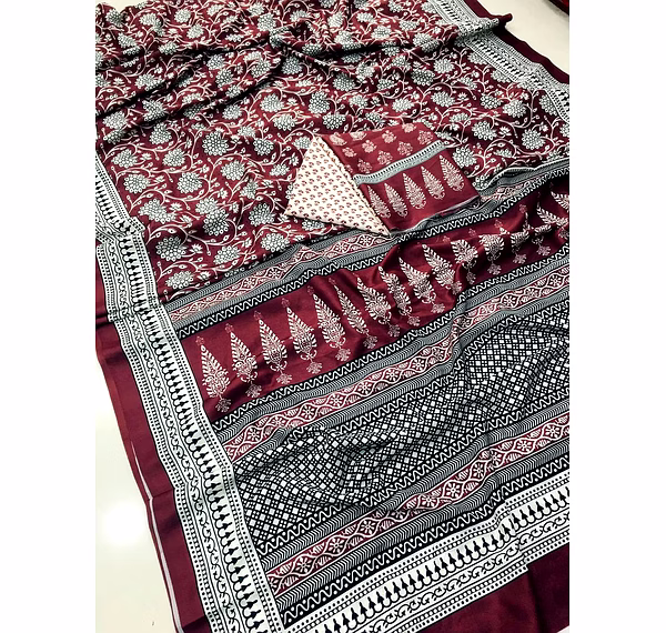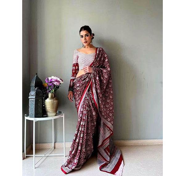 Saree Design: Ajrakh Hand Block Printing On All Over The Saree