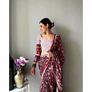Discover the allure of heritage craftsmanship with our Ajrakh Saree, showcasing intricate block prints and natural dyes for a touch of authenticity. Made from premium fabrics, these sarees offer comfort and style in every weave.