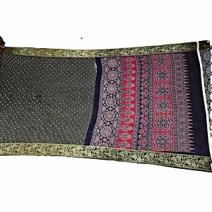 All Over White Color Hand Work Art Silk Bandhani Saree
