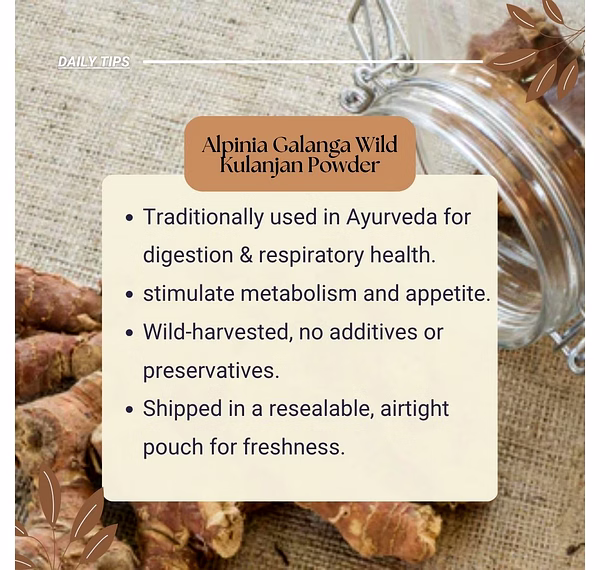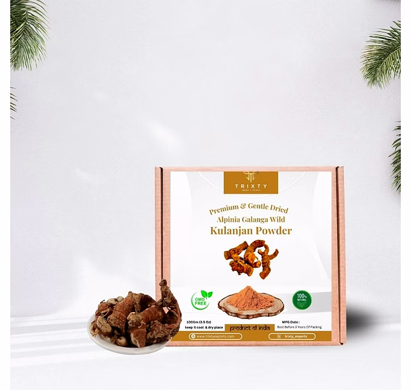 Discover the powerful benefits of Koshtha Kulinjan Powder, also known as Alpinia Galanga, Kulanjan, or Paan Jadd. Sourced from wild-grown roots, this traditional Ayurvedic herb is revered for its digestive and respiratory support properties. Often used in herbal formulations and home remedies, it may help promote appetite, relieve bloating, and support natural immunity.
