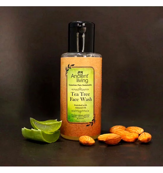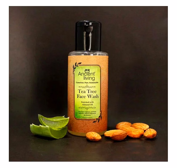 Ancient Living Tea Tree face wash is an anti-bacterial face wash especially suited for oily and acne prone skin types. Tea Tree is renowned for its strong antibacterial qualities. The healing action of Tea Tree oil eliminates blackheads and white heads, prevents scarring. Regular use ensures clear and blemishes free skin. Tea tree oil is antiviral and is used to treat minor cuts and scrapes. Aloe vera known as Kumari in Ayurveda is useful for tissue rejuvenation and soothes any inflammations. Almond oil nourishes and conditions the skin. Natural almonds are a rich source of VitE and Vit D which deeply nourish and protect the skin. Vitamin E keeps skin youthful and maintains skin elasticity by fighting free radicals. Avoid getting into eyes.