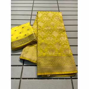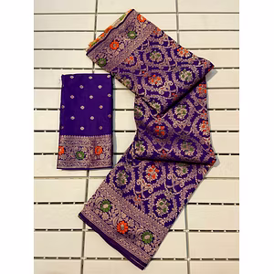 Step into the world of timeless elegance with our Antique Zari Khadi Silk Saree. This exquisite piece is a celebration of ancient craftsmanship, perfectly blending tradition and contemporary style. Crafted with meticulous care, the saree showcases the beauty of zari work, which adds a touch of regal glamour to the overall design. The intricate zari motifs shimmer delicately against the smooth khadi silk, creating an ethereal and captivating effect. But it doesn't stop there. Our saree is further enhanced with Meenakari detailing, a traditional art form that involves the fusion of vibrant colors and intricate patterns. Each Meenakari element is meticulously handcrafted, adding a unique and luxurious touch to the saree. To complete the look, the saree features elegant tassels, which sway gracefully with every movement, exuding an aura of grace and sophistication. Not only does our Antique Zari Khadi Silk Saree make a stunning style statement, but it also offers unparalleled comfort. The lightweight khadi silk drapes effortlessly, allowing you to move with ease and confidence. Whether you're attending a wedding, a festive celebration, or a special occasion, this saree is sure to make heads turn and leave a lasting impression. Embrace the allure of timeless beauty and make a statement with our Antique Zari Khadi Silk Saree.