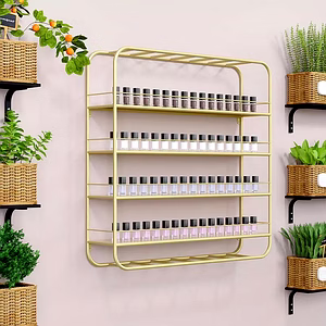 Ase Multi Level wall shelves with a gold polish ladder Metal frame with wooden shelves.