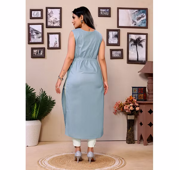 Effortlessly elegant and endlessly versatile, this Pure Cotton Sleeveless Long Kurti for Women is a perfect blend of style, simplicity, and comfort. Tailored from 100% soft, breathable cotton, this kurti is designed to keep you cool and comfortable all day long, especially during warmer seasons.