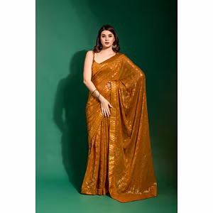 Indulge in luxury with our soft georgette printed saree featuring beautiful 7mm embroidery and heavy sequin work. The delicate detailing adds a graceful charm that is perfect for any celebration.