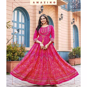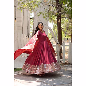 Introducing our exquisite Banarasi Embroidered Gown with Sequin Work, available in sizes S to 3XL. This stunning gown is the epitome of elegance and sophistication, designed to make you stand out from the crowd. Crafted with meticulous attention to detail, this gown features intricate Banarasi embroidery, showcasing the rich heritage of Indian craftsmanship. The delicate sequin work adds a touch of glamour, adding shimmering accents that catch the light and create a mesmerizing effect. Not only does this gown enhance your beauty, but it also offers unparalleled comfort. Made from high-quality fabric, it drapes gracefully and gently caresses your skin, ensuring a comfortable fit throughout the day or night. Whether you're attending a wedding, a formal event, or a special occasion, this gown will make heads turn and leave a lasting impression. Its timeless design and versatile color options make it suitable for a wide range of occasions and personal styles. But the beauty of this gown isn't just skin deep. It's also a practical choice, featuring a convenient side zipper closure that allows for easy wear and removal. With our Banarasi Embroidered Gown with Sequin Work, you can exude confidence and elegance effortlessly. It's a statement piece that will make you feel like royalty, empowering you to embrace your inner diva. So why settle for ordinary when you can dazzle in extraordinary? Step into the spotlight and let our Banarasi Embroidered Gown with Sequin Work enhance your beauty and captivate everyone's attention. Don't miss out on this timeless masterpiece that combines traditional artistry with modern style. Experience the allure of this remarkable gown and make a lasting impression wherever you go.