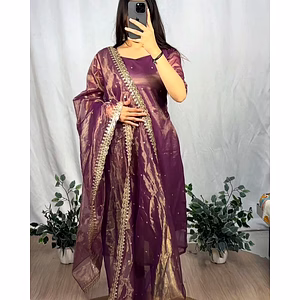 Introducing our exquisite Banarasi Embroidered Gown with Sequin Work, available in sizes S to 3XL. This stunning gown is the epitome of elegance and sophistication, designed to make you stand out from the crowd. Crafted with meticulous attention to detail, this gown features intricate Banarasi embroidery, showcasing the rich heritage of Indian craftsmanship. The delicate sequin work adds a touch of glamour, adding shimmering accents that catch the light and create a mesmerizing effect. Not only does this gown enhance your beauty, but it also offers unparalleled comfort. Made from high-quality fabric, it drapes gracefully and gently caresses your skin, ensuring a comfortable fit throughout the day or night. Whether you're attending a wedding, a formal event, or a special occasion, this gown will make heads turn and leave a lasting impression. Its timeless design and versatile color options make it suitable for a wide range of occasions and personal styles. But the beauty of this gown isn't just skin deep. It's also a practical choice, featuring a convenient side zipper closure that allows for easy wear and removal. With our Banarasi Embroidered Gown with Sequin Work, you can exude confidence and elegance effortlessly. It's a statement piece that will make you feel like royalty, empowering you to embrace your inner diva. So why settle for ordinary when you can dazzle in extraordinary? Step into the spotlight and let our Banarasi Embroidered Gown with Sequin Work enhance your beauty and captivate everyone's attention. Don't miss out on this timeless masterpiece that combines traditional artistry with modern style. Experience the allure of this remarkable gown and make a lasting impression wherever you go.