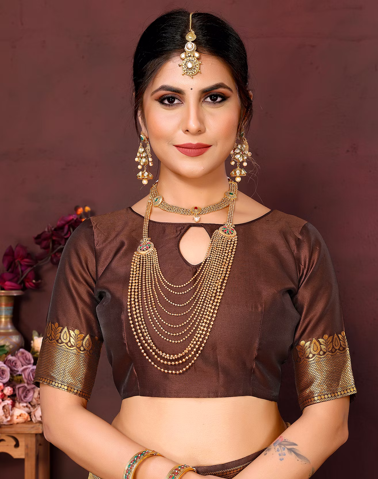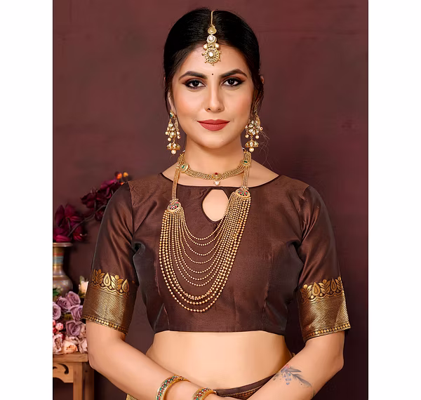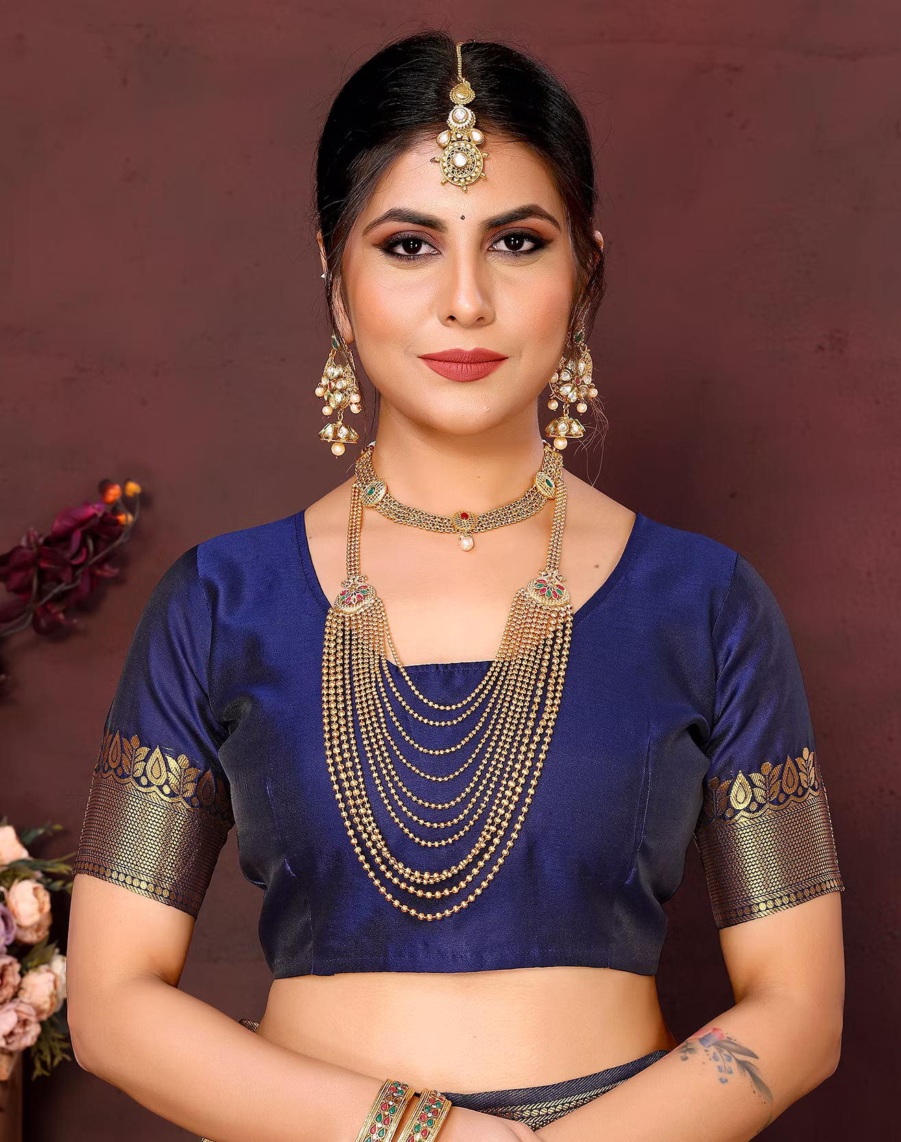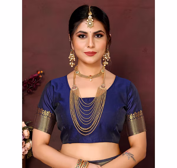 From weddings to cultural events, the saree transitions seamlessly from day to evening wear. The matching blouse material allows for custom styling, blending traditional allure with contemporary flair.