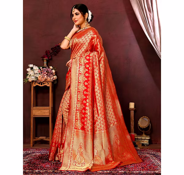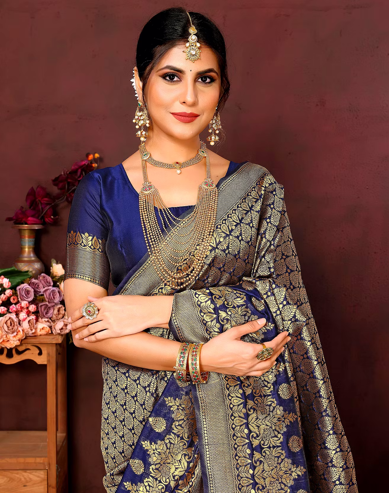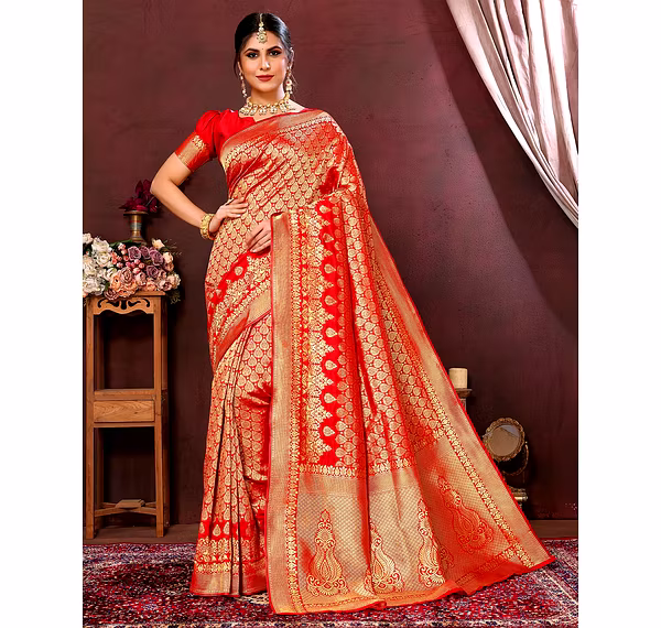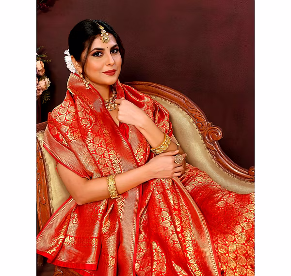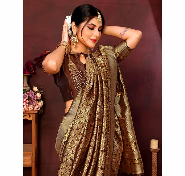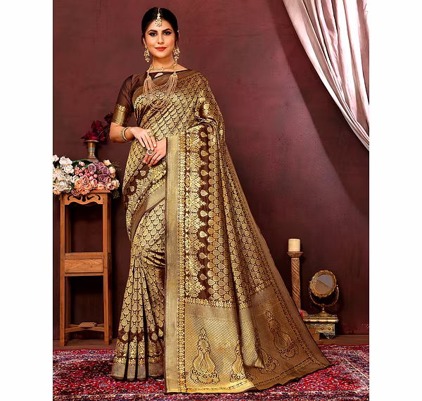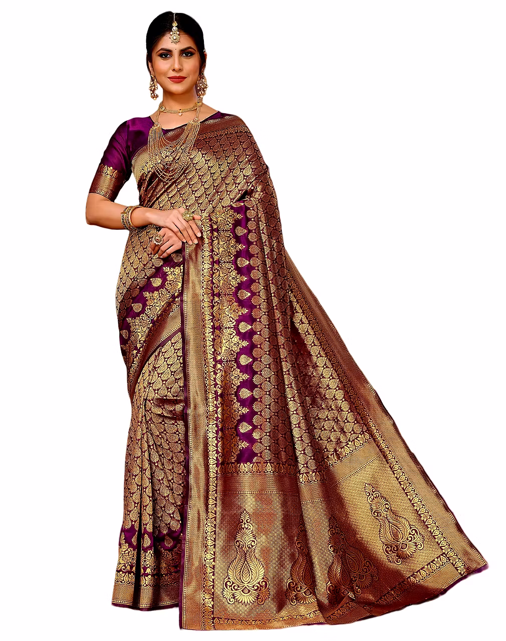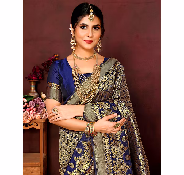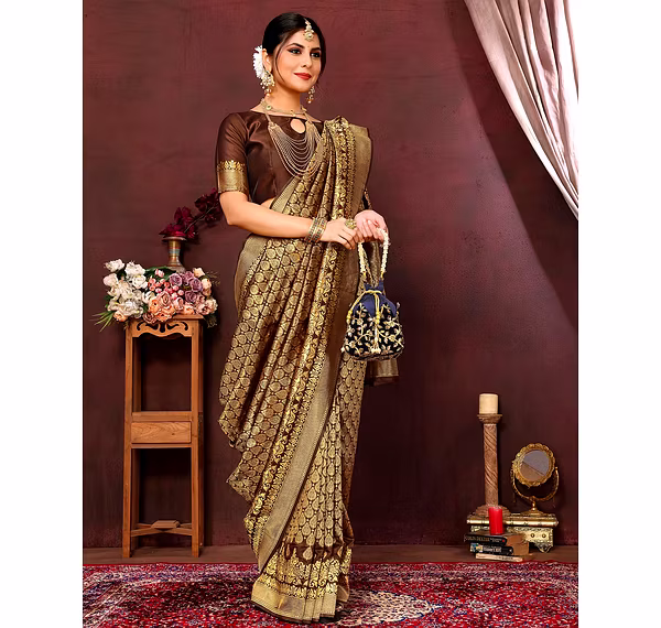 Experience timeless elegance with the Banarasi Kanjivaram Art Silk Saree. Rich in heritage and craftsmanship, this saree offers a blend of tradition and sophistication.