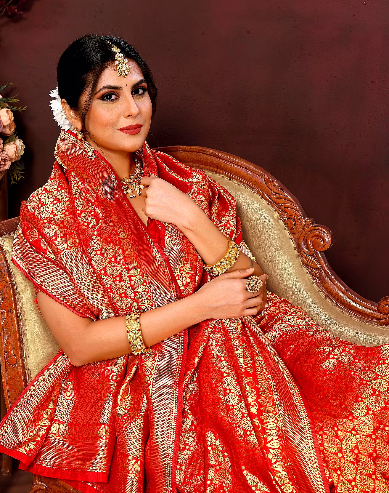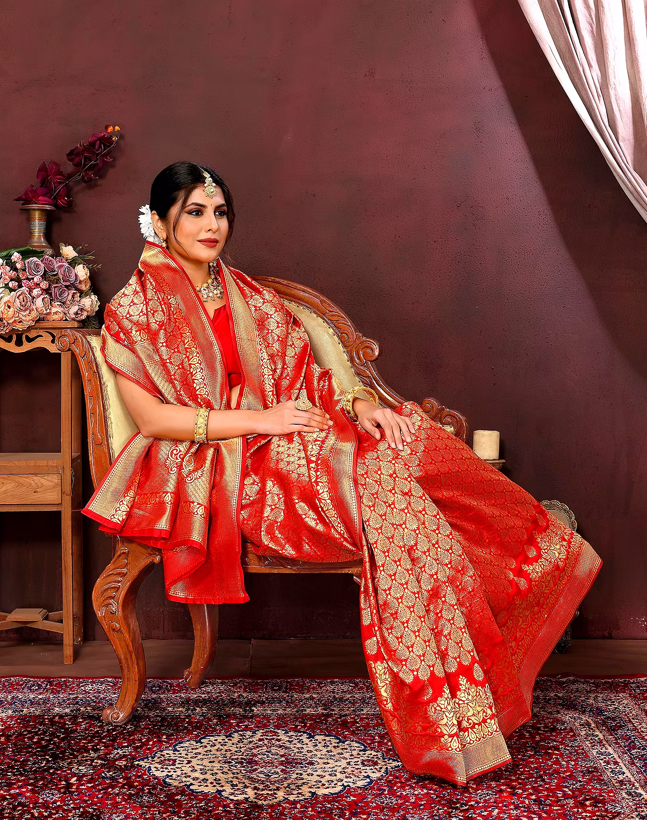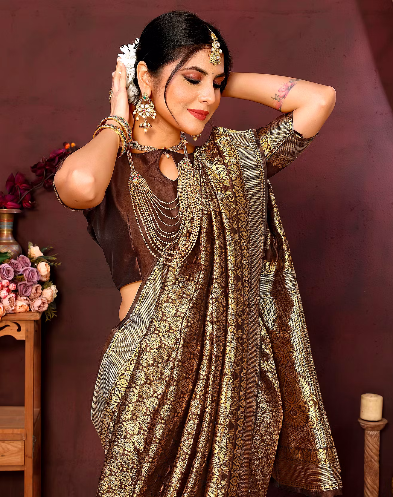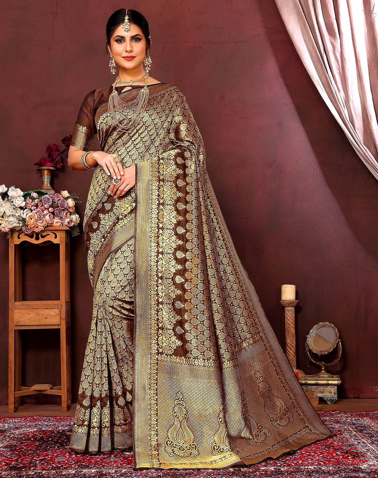 Experience timeless elegance with the Banarasi Kanjivaram Art Silk Saree. Rich in heritage and craftsmanship, this saree offers a blend of tradition and sophistication.