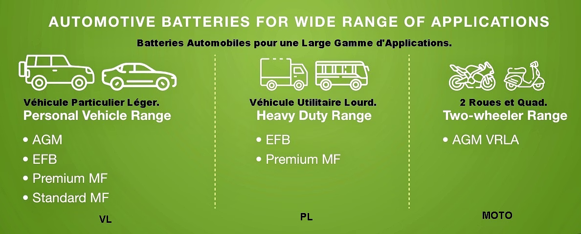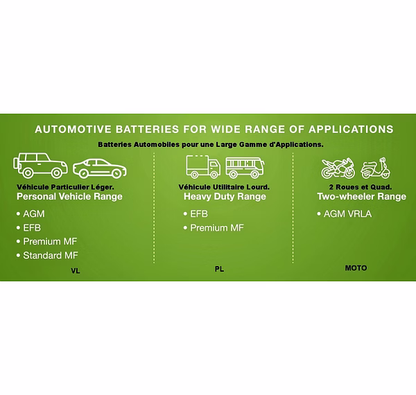 Une large gamme de batteries pour véhicules de tourisme et utilitaires a été conçue pour exceller même sur les routes accidentées et dans des conditions climatiques difficiles.