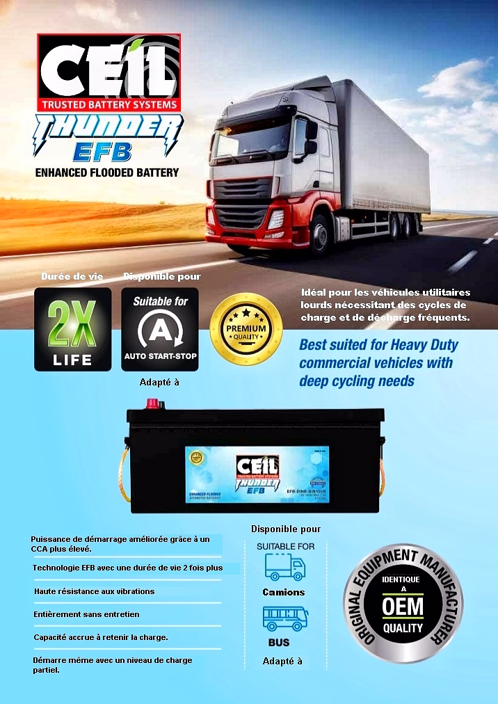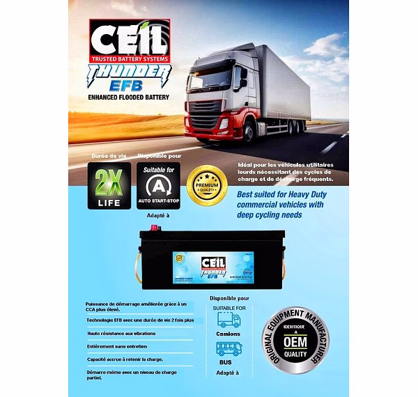 Batterie PL Ceil THUNDER EFB Start and Stop et Sans Entretien :