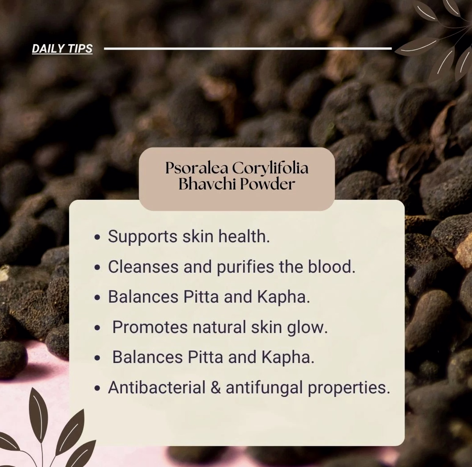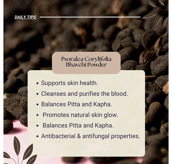 Bavchi is widely used in Ayurveda for managing vitiligo, eczema, psoriasis, and discoloration, and it is believed to help restore balance by cleansing the blood and rejuvenating the skin from within.