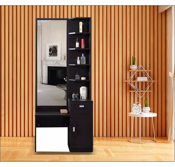A dressing table is a functional furniture piece with a mirror and storage space for cosmetics, accessories, and toiletries. It enhances personal care routines while adding style and organization to any room.