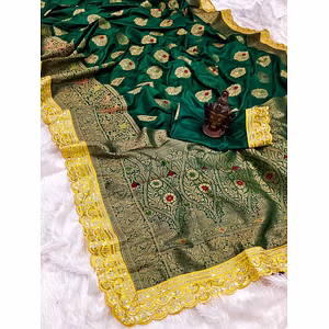 Introducing the Super Dola Silk Saree - a stunning masterpiece that combines elegance and comfort for the modern Indian woman. This saree boasts a special design that covers the entire fabric with an all-over pattern, making it perfect for any occasion, be it a party, wedding, or formal event. The saree is made from high-quality Dola silk material that drapes beautifully on any body shape, highlighting the wearer's curves and leaving them feeling confident and stylish. One of the unique selling points of this saree is the beautiful jequrd border that adds a touch of sophistication and glamour to the overall look. The border is intricately woven with intricate patterns that make it stand out from any other saree. Additionally, the saree comes with a running blouse that is ready to wear, making it easy for customers to get ready for any occasion quickly. The Super Dola Silk Saree is the perfect addition to any Indian woman's wardrobe, providing the ideal blend of style and comfort. The saree is easy to wear and maintain, making it a practical choice for anyone who wants to look and feel their best all day long. With its beautiful design, high-quality material, and unique features, this saree is sure to make any woman stand out from the crowd. Don't miss out on this opportunity to add a touch of elegance and glamour to your wardrobe today!