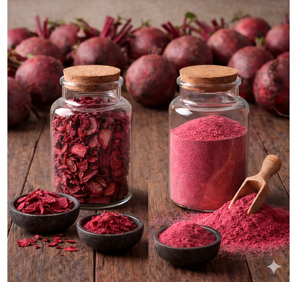 Beetroot powder is a functional dehydrated beetroot powder manufactured by drying and milling beetroot into a fine, free-flowing form. This process preserves the root’s natural red pigmentation and key functional components while improving shelf stability and handling efficiency for commercial production.