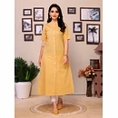 Beige Pure Cotton Long Kurti for Women with Round Collar & 3/4 Sleeves Bold design for the confident working women | Formal & Casual versatile kurti | Knee-length straight kurti for all bottoms