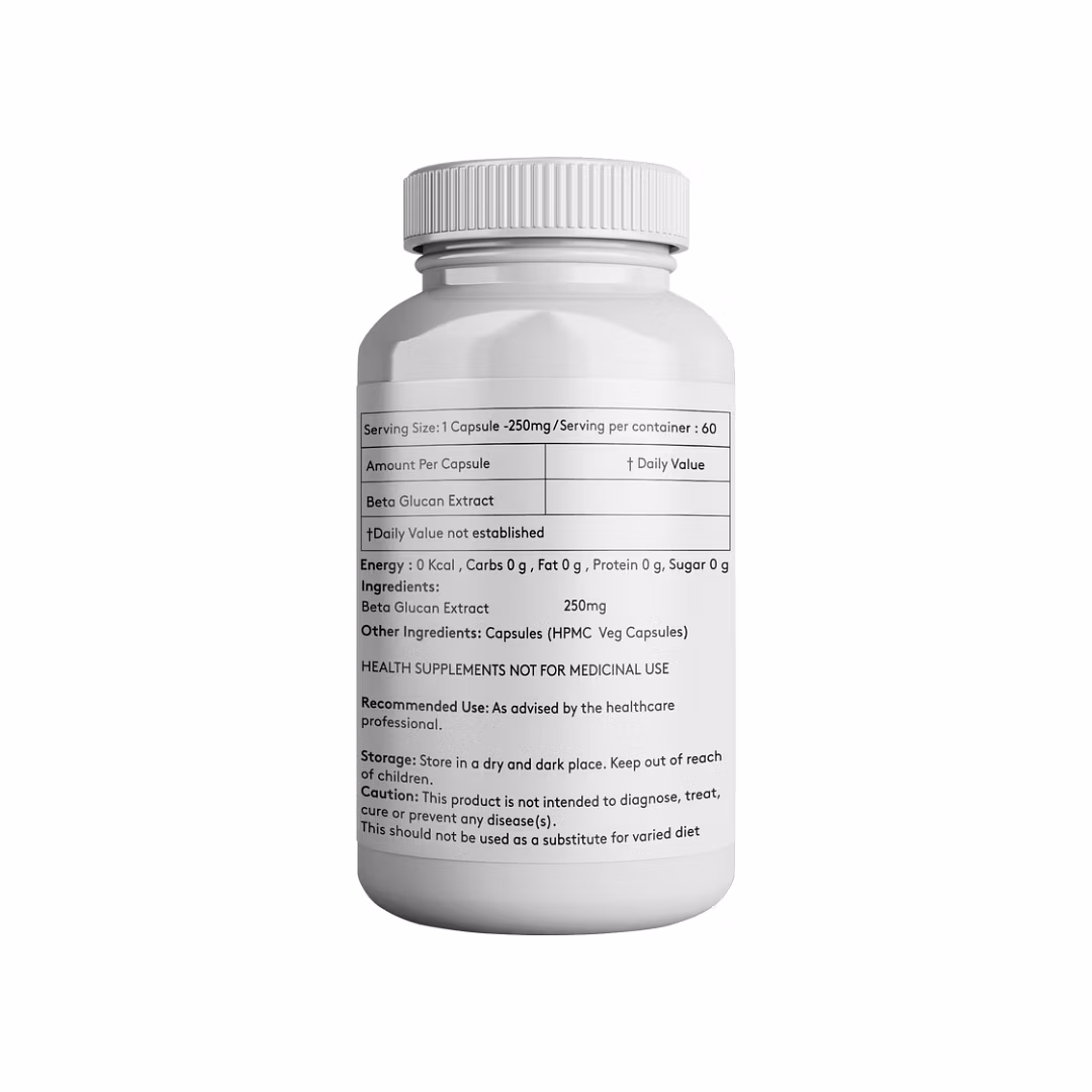 Beta Glucan - 250mg Capsule by Giosun is an ayurvedic product developed to meet the needs of individuals seeking natural body care. It is crafted with select herbs known for their therapeutic effects.