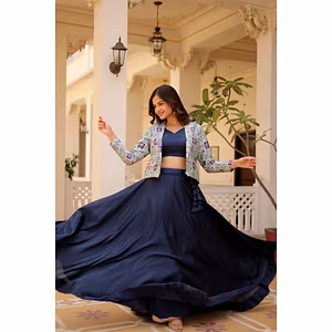 Turn heads with this black and orange lehenga featuring intricate embroidery and stunning design elements. Perfect for weddings, parties, and special occasions.