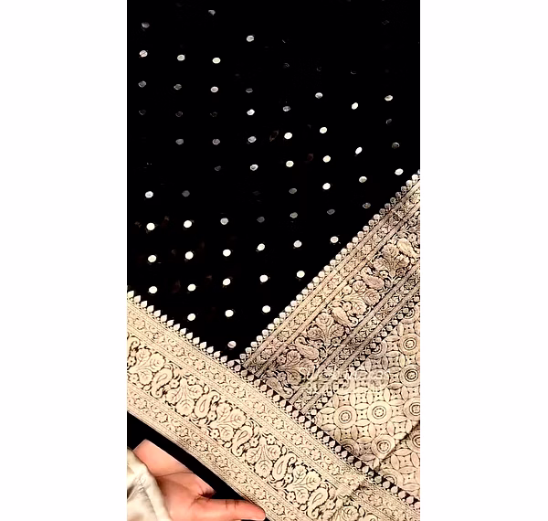 • Border: Rich, contrasting zari work that adds a regal frame to the drape.