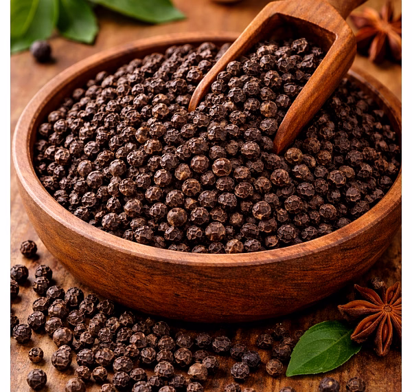 Whole black pepper berries are processed to retain piperine levels and essential volatiles while minimising contaminants. Sorting removes undersized and damaged material; sieving and aspiration reduce foreign matter. Analytical testing includes moisture, piperine estimation and residual contaminants per international export standards. Each lot is issued a COA documenting grade, moisture and sensory indicators so buyers can anticipate processing behaviour and flavour output.