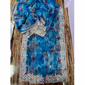 This Blooming Embroidered Satin Saree is the perfect addition to any wardrobe. Made from high-quality satin fabric, this saree is comfortable and durable, ensuring that it will remain a staple in your collection for years to come. Featuring exquisite embroidery in a variety of vibrant hues, this saree is sure to turn heads. The intricate floral designs are crafted using viscose thread, giving them a lustrous sheen that catches the light beautifully. One of the unique selling points of this saree is its versatility. Whether you're headed to a wedding, a formal event, or a casual gathering, this saree is sure to impress. Pair it with traditional jewelry and accessories for a classic, elegant look, or dress it down with simple, understated pieces for a more contemporary feel. Another key feature of this saree is its easy maintenance. Simply hand wash or dry clean as needed, and it will remain as vibrant and stunning as the day you bought it. In short, the Blooming Embroidered Satin Saree is a must-have for any fashion-conscious woman. With its exquisite embroidery, high-quality fabric, and versatile design, it is sure to become a treasured part of your collection. So why wait? Order yours today and experience the beauty and elegance of this stunning saree for yourself!