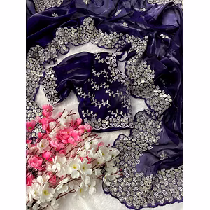 The intricate 3MM Sequence Work adds a touch of glamour and sparkle, making you the center of attention wherever you go. The vibrant blooming floral pattern brings a refreshing and youthful vibe, making this saree perfect for both traditional and contemporary events.