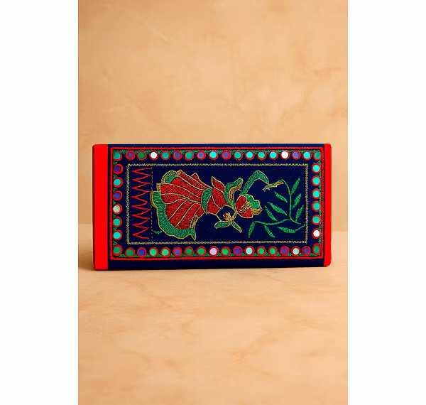 Dancing Girl Blue Clutch Purse with Mirror Work from JFS Global Trade is a handcrafted clutch bag in the clutch purses range, designed with cotton, dyed cotton. The beaded surface and detailing provide a distinct handmade look that fits ethnic, boho and occasion-wear collections in global markets. With careful work on the exterior and a soft inner base, this handmade beaded bag is suitable for carrying essential personal items. It is well suited for wholesalers, importers and private-label fashion brands seeking handmade beaded bags for bulk sourcing and export.