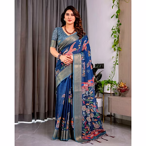 Indulge in the beauty of intricate digital prints that adorn this Blue Linen Saree. Each detail tells a story, adding a touch of elegance and sophistication to your ensemble.