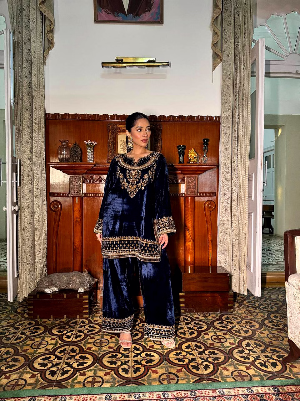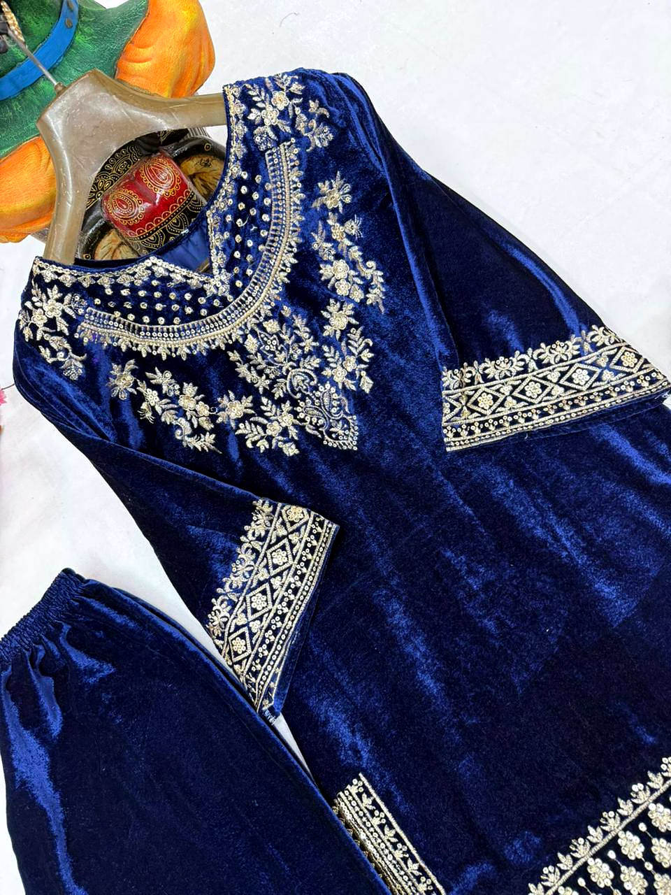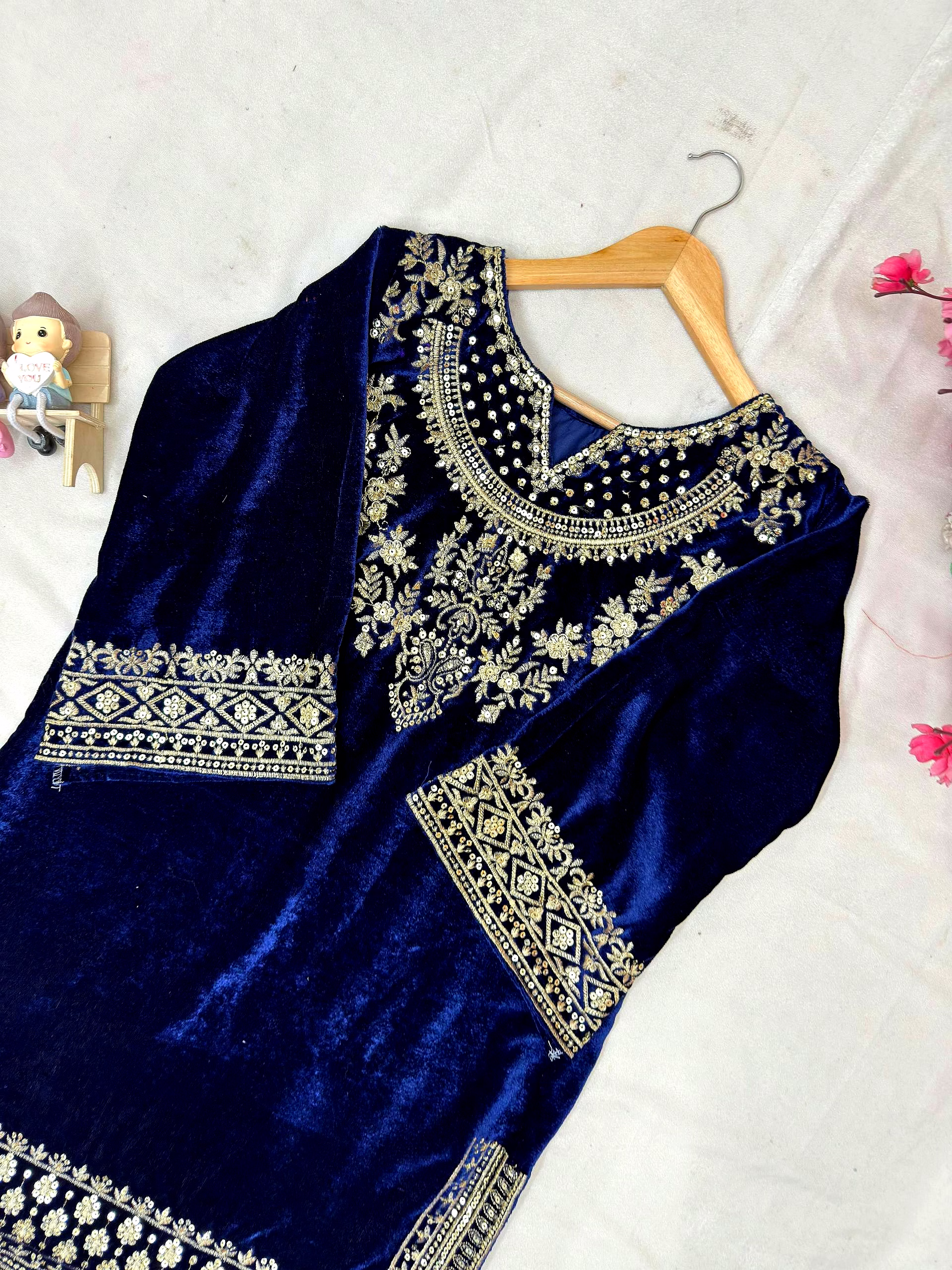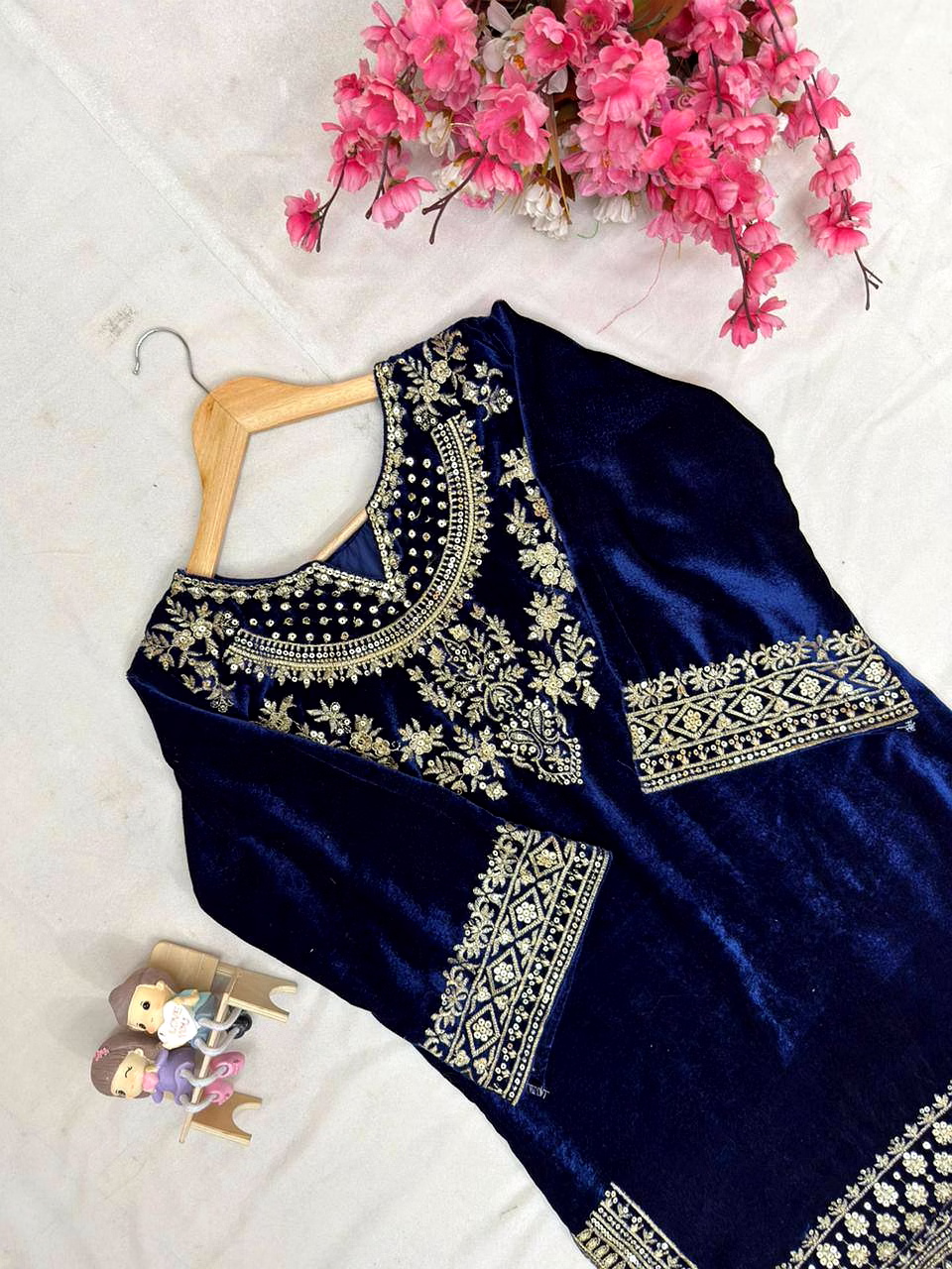 Add timeless elegance to your ethnic wardrobe with the Blue Velvet Kurti with Sequence Work. Crafted from plush velvet fabric and enhanced with shimmering sequence embroidery, this kurti delivers a perfect blend of luxury, comfort, and festive charm.